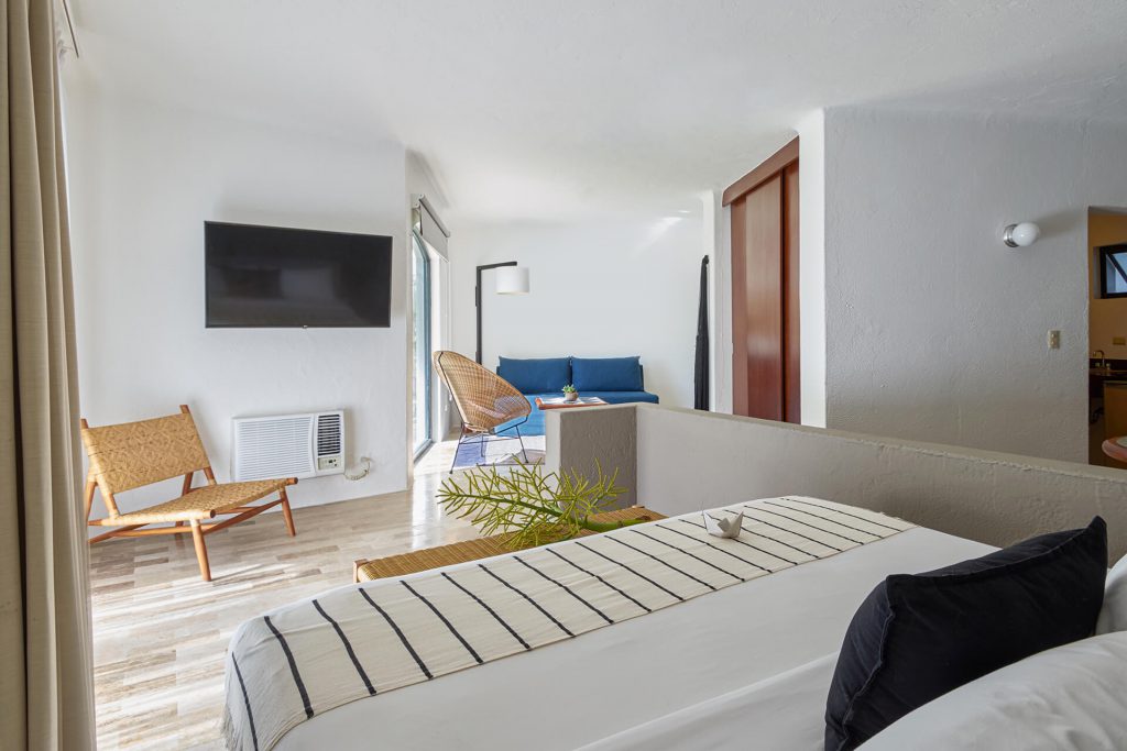 La preferida de Gaviana, esta Jr Suite cuenta con una cama king y una pequeña estancia